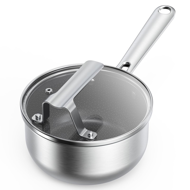 - The laser-etched non-stick coating provides effortless food release, offering a smoother experience than traditional stainless steel soup pots. Perfect for daily cooking, it handles a wide range of tasks—whether you’re warming milk, cooking eggs, making hot chocolate, syrups, compotes, melting butter, preparing gravy, or reheating soup. Plus, our saucepan completely PFOA-free for safer cooking.