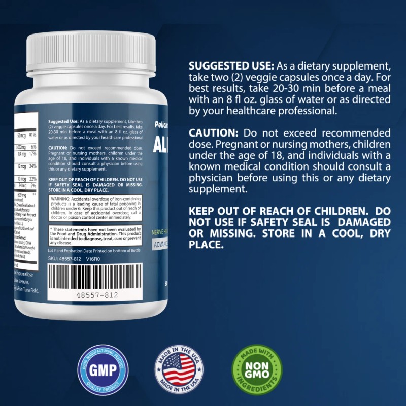 Pelican Vitamins Alpha Cur- Brain & Nerve Support- 10 Bottles- 600 Capsules