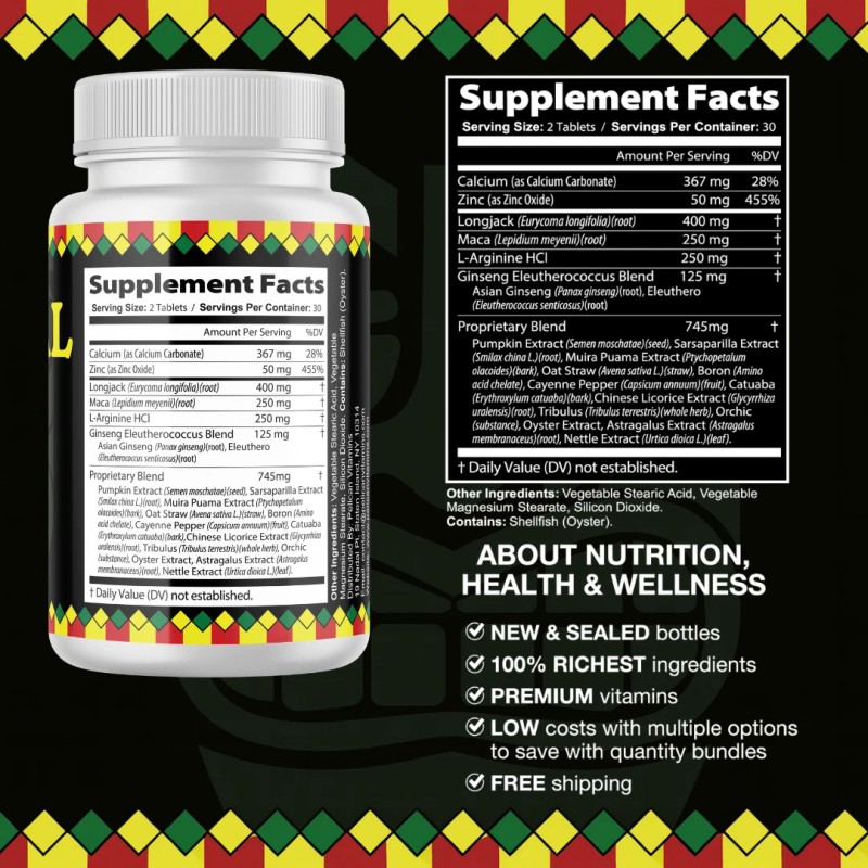 - Ingredients: Maca, Vitamin B3 (Niacin), Zinc