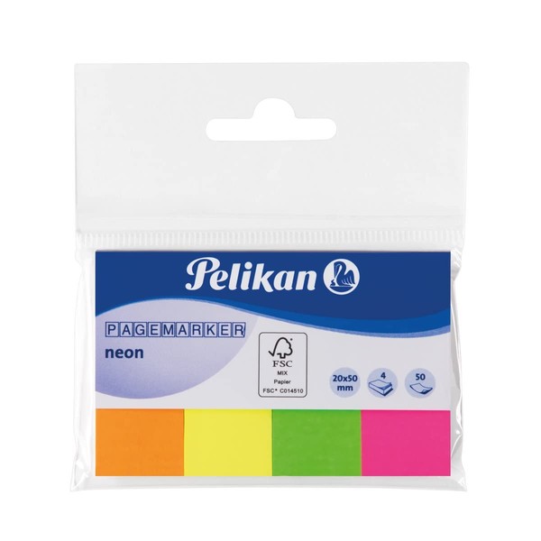 Pelikan 200253 Page Markers 20 x 50 mm Transparent 4 x 50 Sheets, Neon Mix