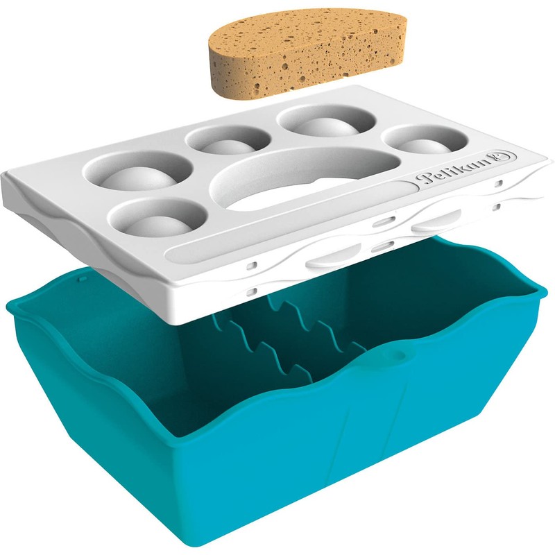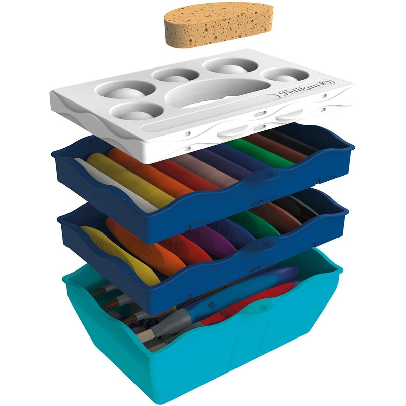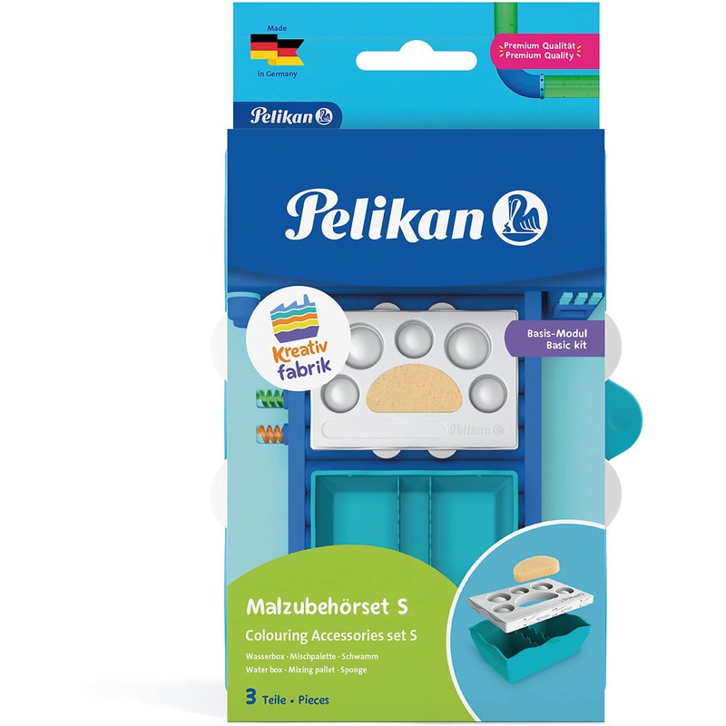 - Small basic set from Pelikan Creative Factory consisting of three-part water box, practical mixing palette, brush tray and sponge