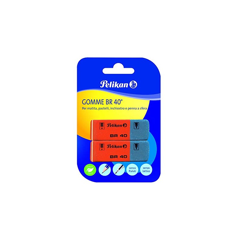 Pelikan BR40 White Erasers for Pencils, Crayons, Ink and Ballpoint Pens, Suitable for Technical Drawing and Disassembly, Pack of 2