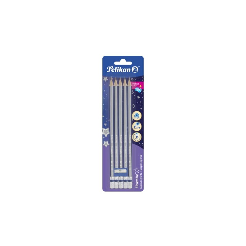 Pelikan Tarjeta de 5 Lápices de Grafito #2HB Triangular Silverstar