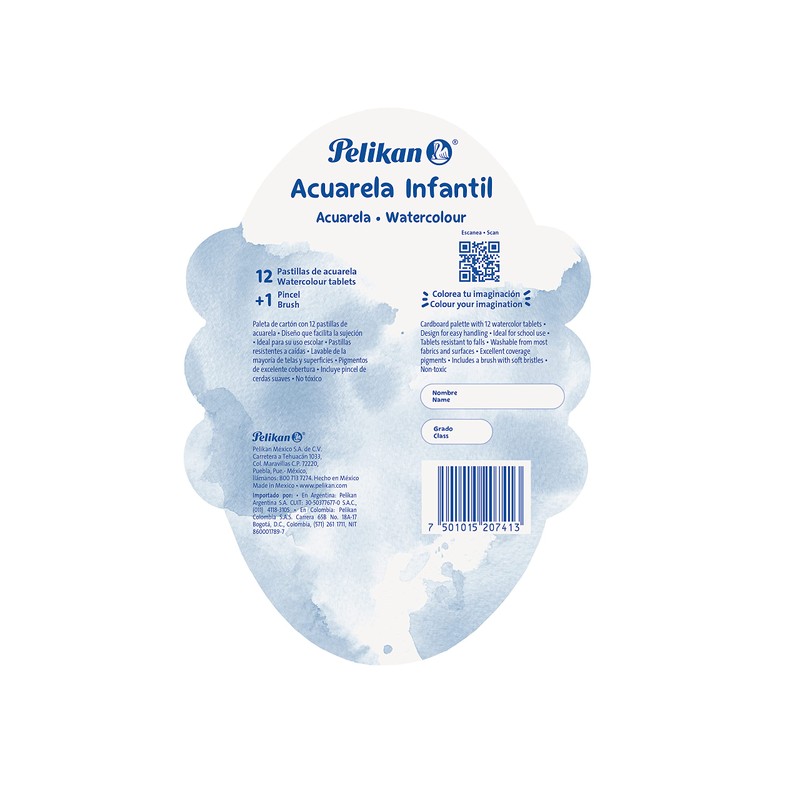 Pelikan Washable Watercolor Paint and Brush Set, 12 Colors, 1 Each (07501215)