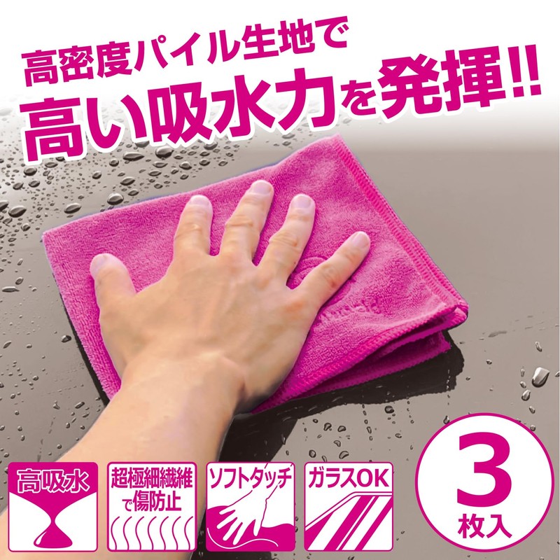 Pellucid PCD-218 Car Wash Supplies, Towel, Draining Cloth, Set of 3, 15.7 x 15.7 inches (400 x 400 mm), Wiping Absorbent Cloth, Wiping Up Coating