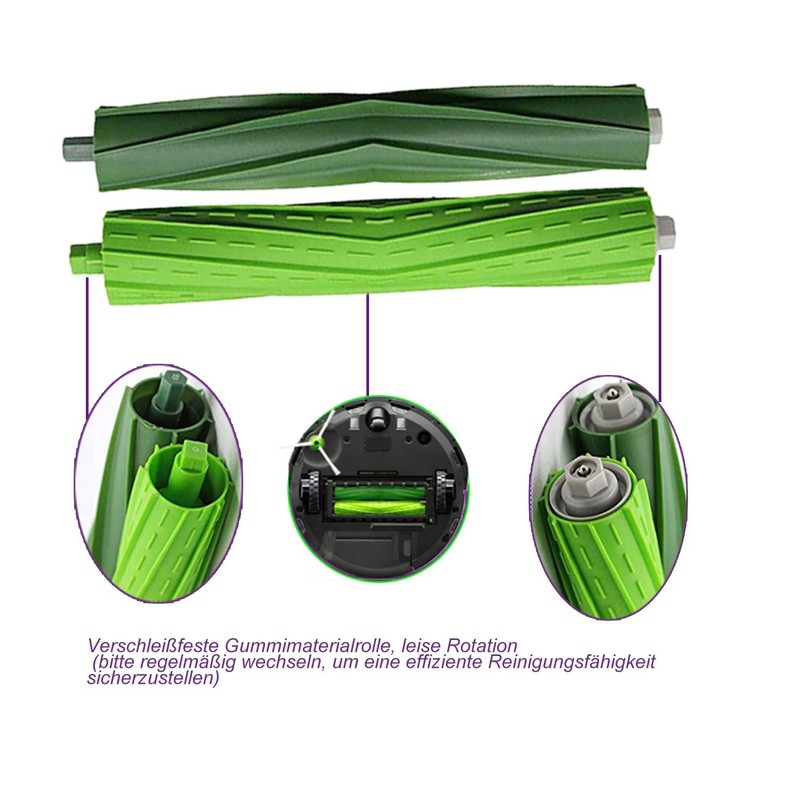 - Wertvolle Ersatzwalze: Beinhaltet 2 S?tze doppelter Mehrfl?chen-Gummib1rstenwalzen f1r Roomba. Die Produkte werden aus hochfesten und umweltfreundlichen Materialien hergestellt, um eine optimale Leistung und einen ges1nderen Lebensstil zu gew?hrleisten.
