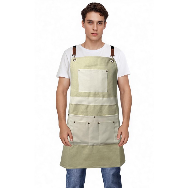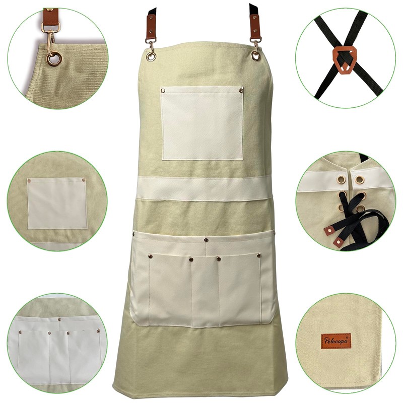 Pelocapa Barber Apron Hair Stylists Apron Waterproof Canvas Apron with 6 Pockets, Cream Color, 22"×34.5"