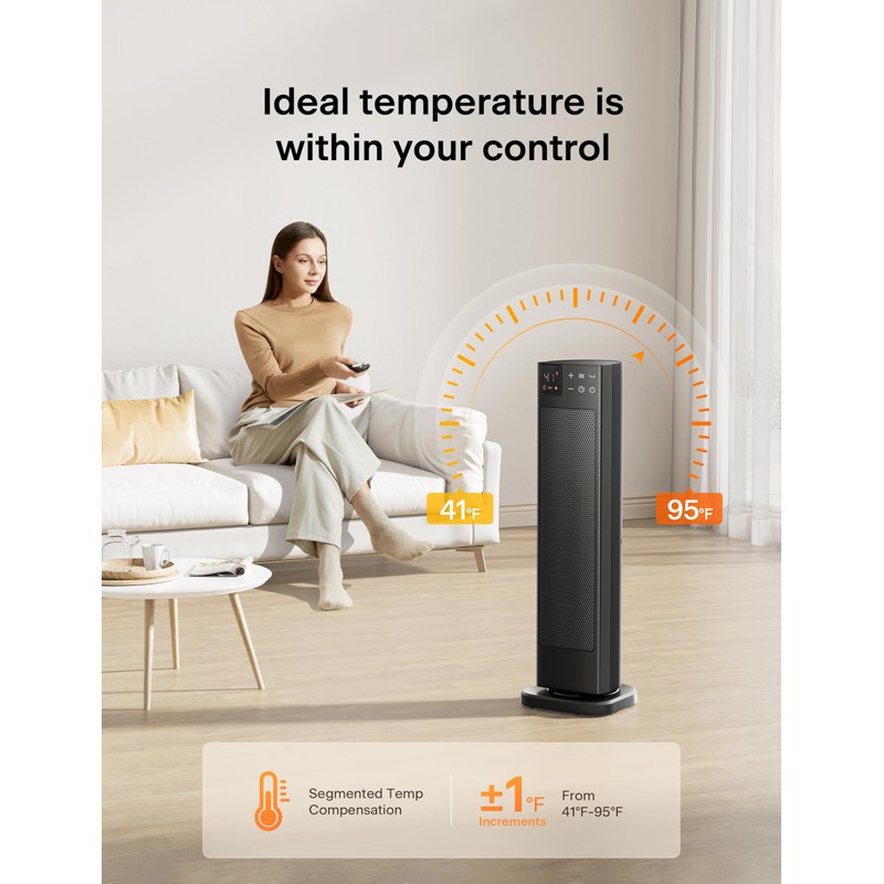 - WIDE HEATING COVERAGE Our 23 tower heater can cover up to 220 ft2, paired with a 75 wide Oscillation helps the heat cover every corner of the room, perfect choice for large bedrooms and large living rooms.