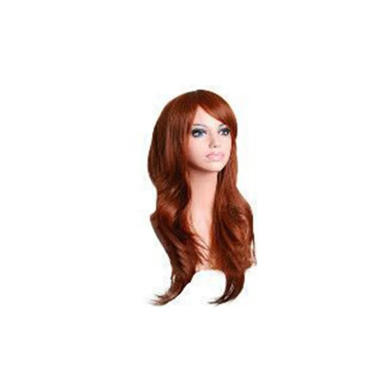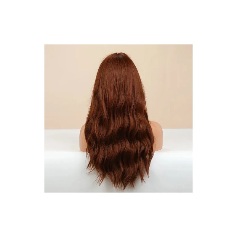 Peluca Larga Rojizo Marrón Rizada Ondulada Con Flequillo