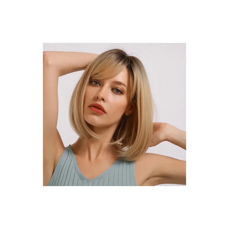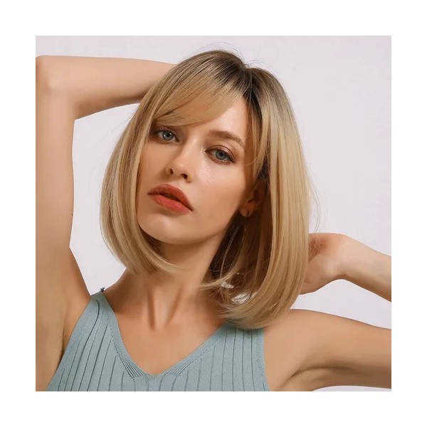 La peluca rubia corta a la altura de los hombros es perfecta para quienes buscan un cambio de look sin necesidad de ir a la peluquería.