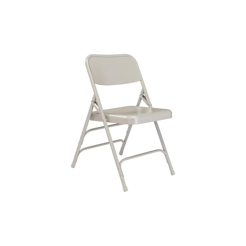 The strongest in its class, our premium all-steel institutional-grade folding chair features a heavy-duty powder-coated 18-gauge tubular frame with a 2.25" frame strengthener on each side of the seat. Three double-riveted U-braces - one in front and two in the back - securely support the double-hinged legs. The seat is designed with a waterfall-style front for added comfort. A supportive full-sized double-contoured backrest features curled safety edges and is electromagnetically tack-welded to the frame. Color-coordinated V-tip stability plugs provide added reinforcement at the frame's junction and matching replaceable glides prevent floor damage. The meets MAS Certified Green and ANSI/BIFMA standards.Features : Material: SteelFinish: GrayThree U-shaped double riveted cross bracesFeatures 18-gauge 0.88" round tubular frameElectromagnetically welded seat backSpecifications : Product Dimensions : 29.5"H x 18.25"W x 20.25"DProduct Weight : 9.5 lbsWeight Capacity : 480 lbs