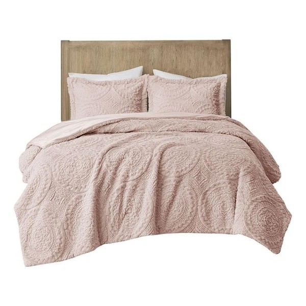 Pemberly Row 3-Piece Fabric Full/Queen Comforter Mini Set in Blush