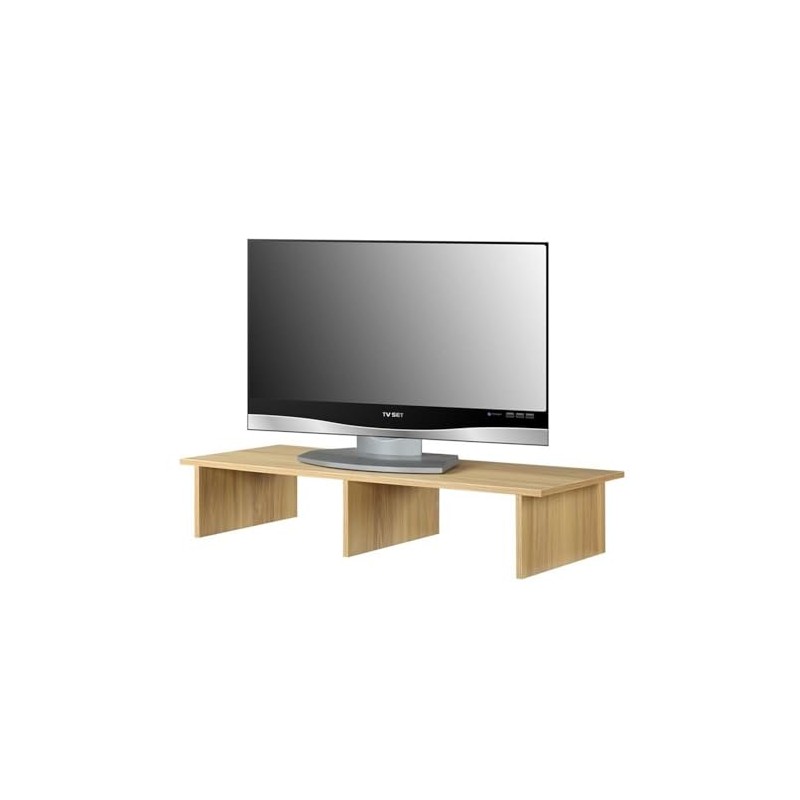Easily add some height and space to any entertainment setup with the Large TV/Monitor Riser by Pemberly Row. Whether adding height to a TV or computer, this large riser is the solution. Additional underneath space offers ample room to store cable boxes, gaming systems, and much more. This sturdy riser is built from particle board, finished with a smooth melamine veneer, and includes a support bar to help with weight. Assemble in minutes right after delivery and pair with coordinating TV stands or desks to complete your home look each sold separately. Features: - Beautiful light oak wood finish - Easy Assembly with Support Bar Included - Built from Melamine Veneer and Particle Board - 8" H x 42" W x 15.75" D Specifications: - Product Dimensions: 8" H x 42" W x 15.75" D - Product Weight: 15