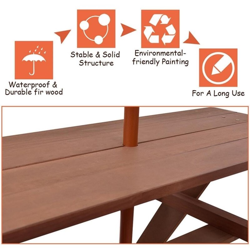 Pemberly Row Outdoor Picnic Table Bench with Folding Umbrella 4 Seat