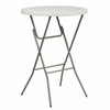 Host mixers at your venue for Wednesday Wind Down, make it a social setting incorporating these bar height cocktail tables. These pub tables encourage everyone to stand around and mingle as your mixologist serves up delicious signature drinks to keep people coming back to your lounge. During events mix folding bar tables with round table height tables for variation. When you invite friends over to your backyard bash this cocktail table is perfect for socializing or grabbing snacks poolside. This table can comfortably seat up to 3 adults to enjoy friendly conversation. Let the birthday girl shine at her own table while everyone sits at table height tables. The legs fold flat to transport and store away. These event tables are a must have for your event rental business or banquet hall to add variety to your seating. Although designed for indoor events this party table can be used outdoors on the deck or patio during good weather but must be stored indoors.