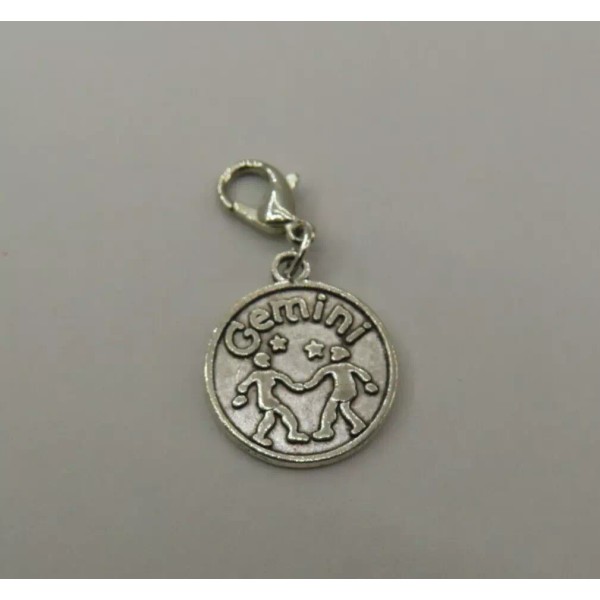 Pemby Studio GEMINI Zodiac Sign Charm Zipper Pull Keychain Add On Clip Silver Tone Horoscope