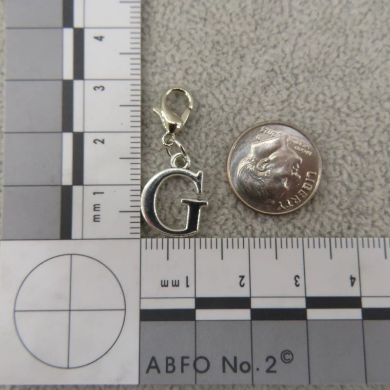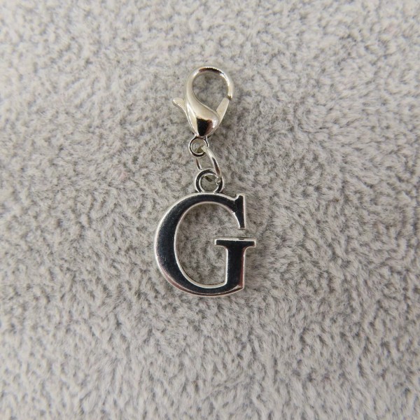 Pemby Studio Initial CAPITAL LETTER G Charm Zipper Pull Keychain Add On Clip Silver Tone