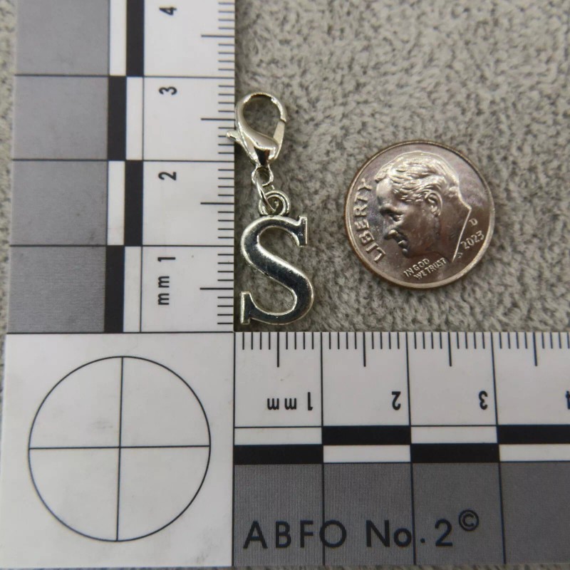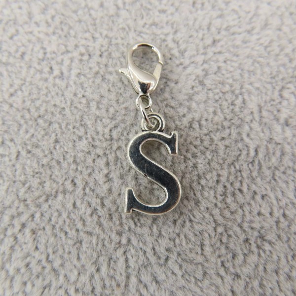 Pemby Studio Initial CAPITAL LETTER S Charm Zipper Pull Keychain Add On Clip Silver Tone