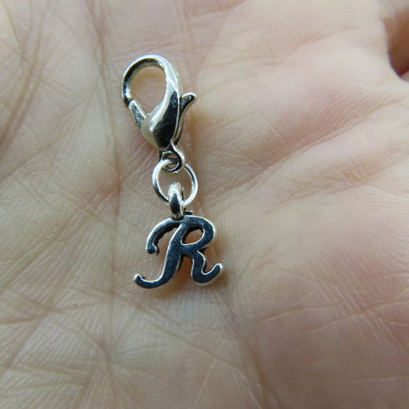 Pemby Studio Initial CURSIVE LETTER R Charm Zipper Pull Keychain Add On Clip Silver Tone