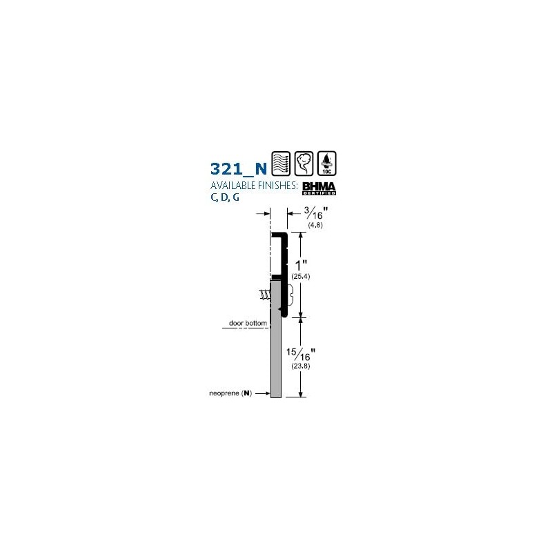 Door bottom sweep, 36" length, with neoprene insert covers gaps up to 15/16". Dark bronze anodized aluminum with black neoprene insert door bottom sweep helps seal against air, dust, water and sound.321DN36