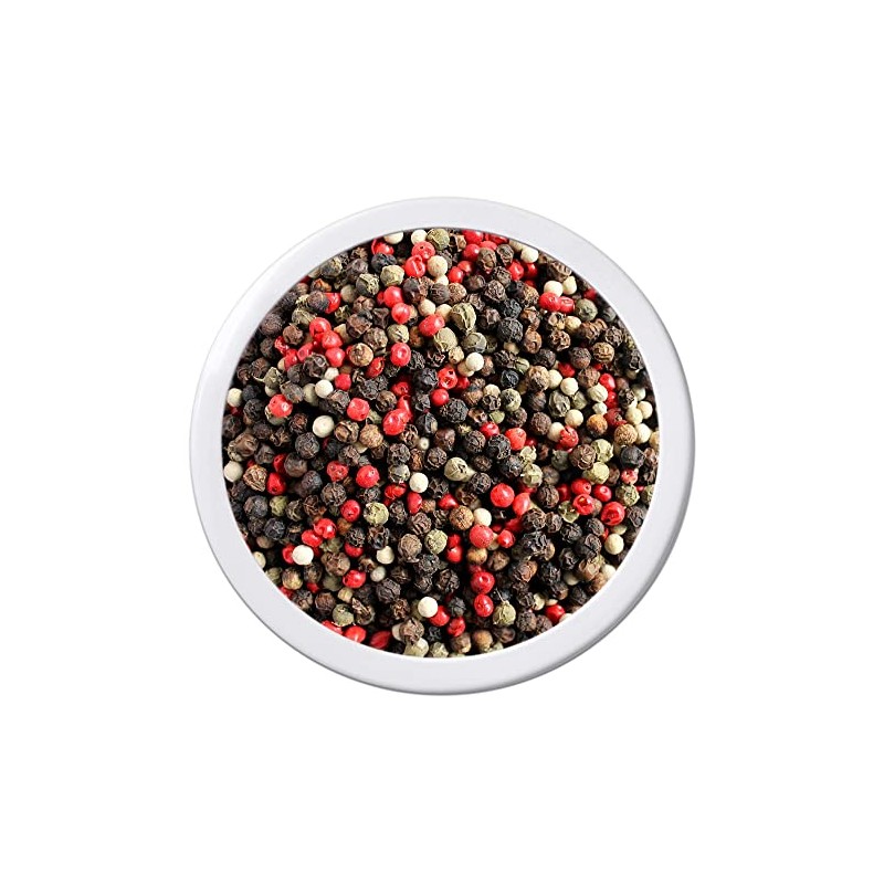 - Colourful pepper whole - Spice mix - Flavour: spicy, sharp - Odour: typical - Structure: 3 - 5 mm large grains - Colour: black, white, green, pink