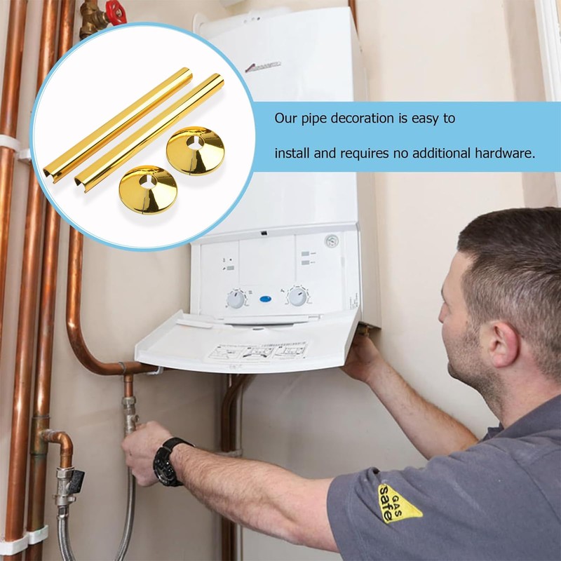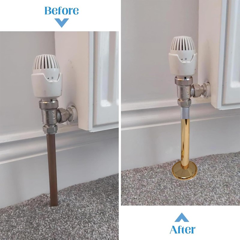 Upgrade the look of your radiator pipework with our Metal Gold Clip-on radiator pipe cover & radiator pipe collars. Designed to neatly conceal exposed 15mm pipe, these covers provide a sleek, proffesional finish while offering easy installation.