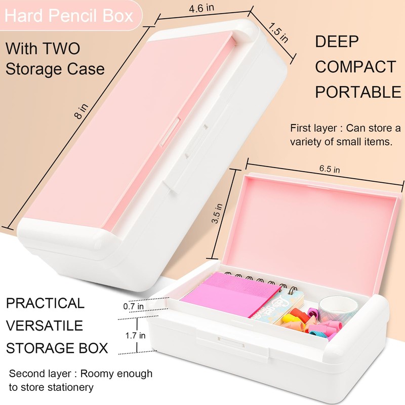 • MULTI-FUNCTION: It's not just a plastic pencil case for neatly storing pens, pencils, crayons, sticky notes, dry erase, and more, but also a small storage box, cosmetic bag, and 3C product bag to fit all your different daily needs when going out, make your daily travel more orderly. Indeed a perfect gift for students,friends, holiday or birthday present, or back to school supplies.