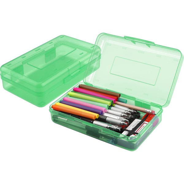 Pencil Box, Large Capacity Clear Pencil Case, 1 Pack Hard Pencil Case, Clear Crayon Box with Snap-tight Lid Stackable Design, Plastic Storage Box for Office Supplies, Green
