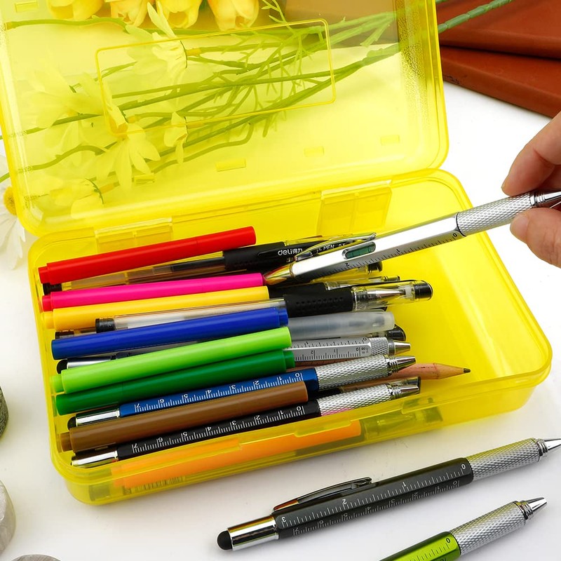• Transparent: Clear construction keeps contents visible quickly without opening the pencil box