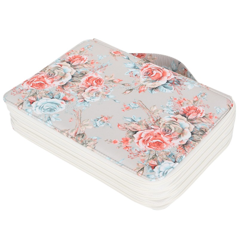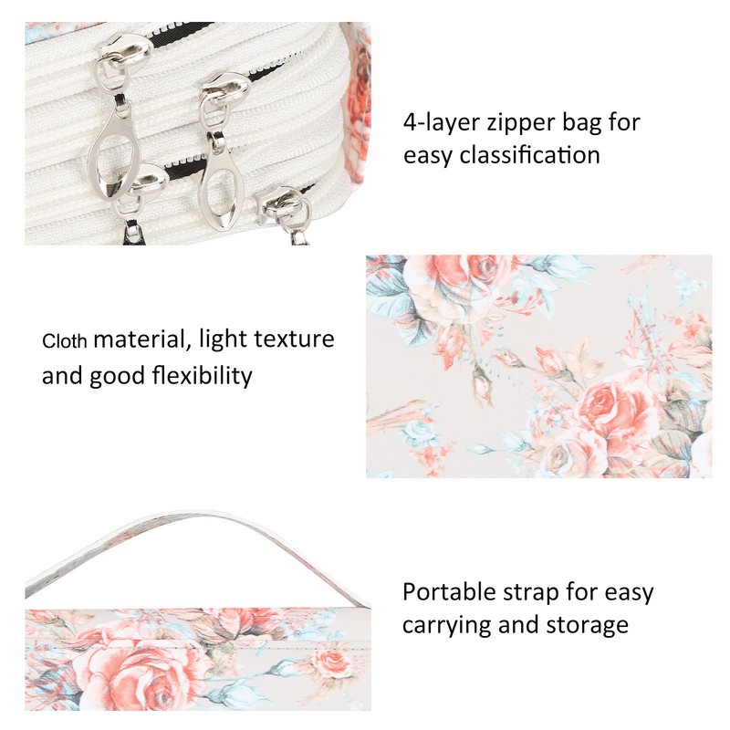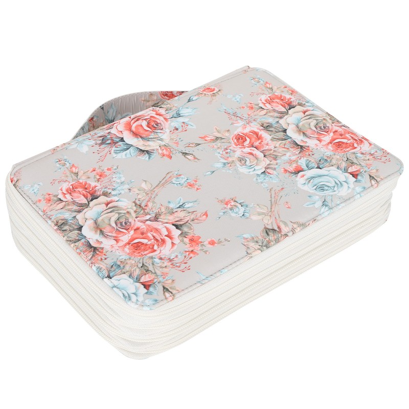 1、The pencil bag has 4 layers of small bags, large capacity and convenient to sort and store pencils. 2、There are about 200 independent pen slots inside, which can hold your pen well to prevent it from falling. 3、Made of high‑quality cloth material, light and flexible texture, good toughness, not easy to damage and can well protect your pens. 4、There is a hand strap on the outside of the storage bag, which is convenient to carry out, and can be hung on the wall when not in use to save space. 5、The pencil case is neatly pressed and has a beautiful and exquisite appearance with a rose print pattern, which is very suitable for art students.