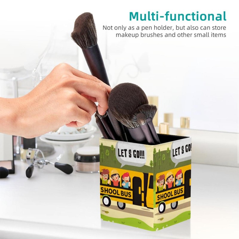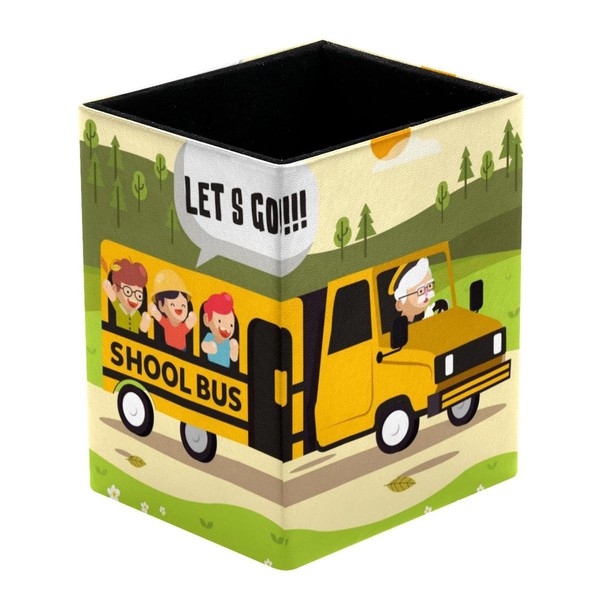 Pencil Holders for Desk, School Bus Prints Pen Holders Pen Pot Makeup Brushes Storage Desktop Stationary Supplies Organizer for Home Office