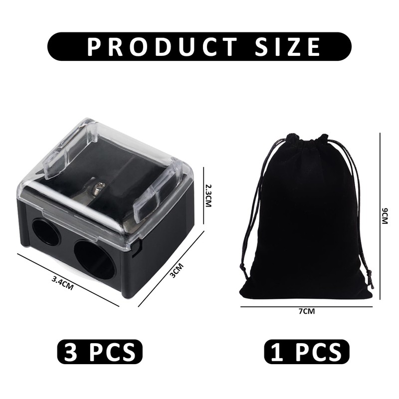 - 【Packaging Included】You will receive 2 black cosmetic sharpeners and 1 black storage bag, the size of the sharpener is 3.4 x 3 x 2.3 cm, small and portable, very suitable for travel, the storage bag can be used to prevent the cosmetic sharpener from being lost.