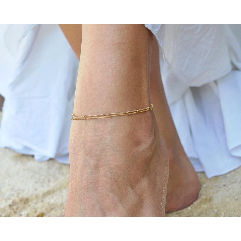 14K gold filled Layered Anklet, high-polished finish can keep colors to last a long time no fading. Lead and Nickel free, Hypoallergenic, No harm to skin.