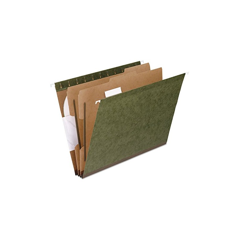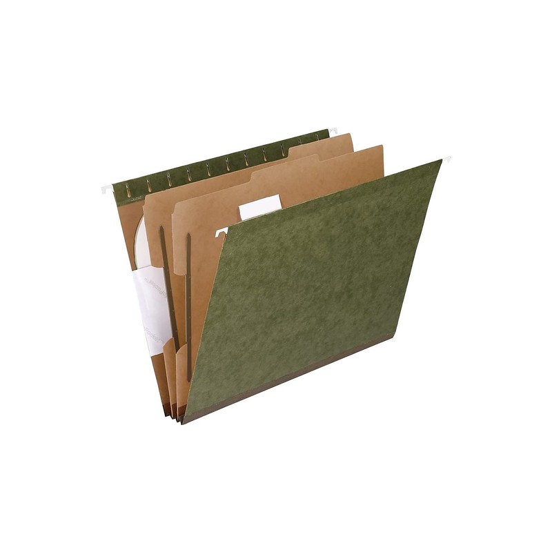 Pendaflex 59254 SureHook Reinforced Hanging Folder, 2 Dividers, Letter, 1/5 Tab, Green, 10/Box