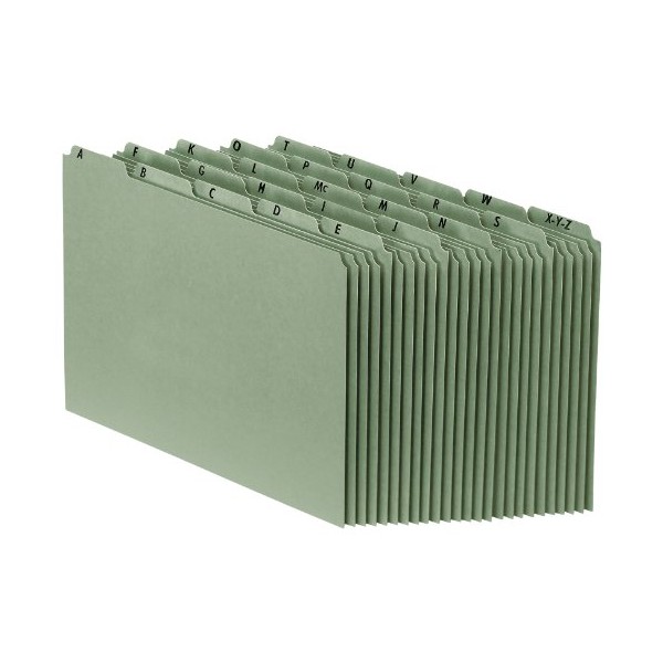 Pendaflex File Organizers, Sturdy Alphabetic File Guides, Letter Size, A-Z Preprinted Headings, Plain Tabs, 25-Point Green Pressboard, 65% Recycled Fiber, 25 Guides/Box