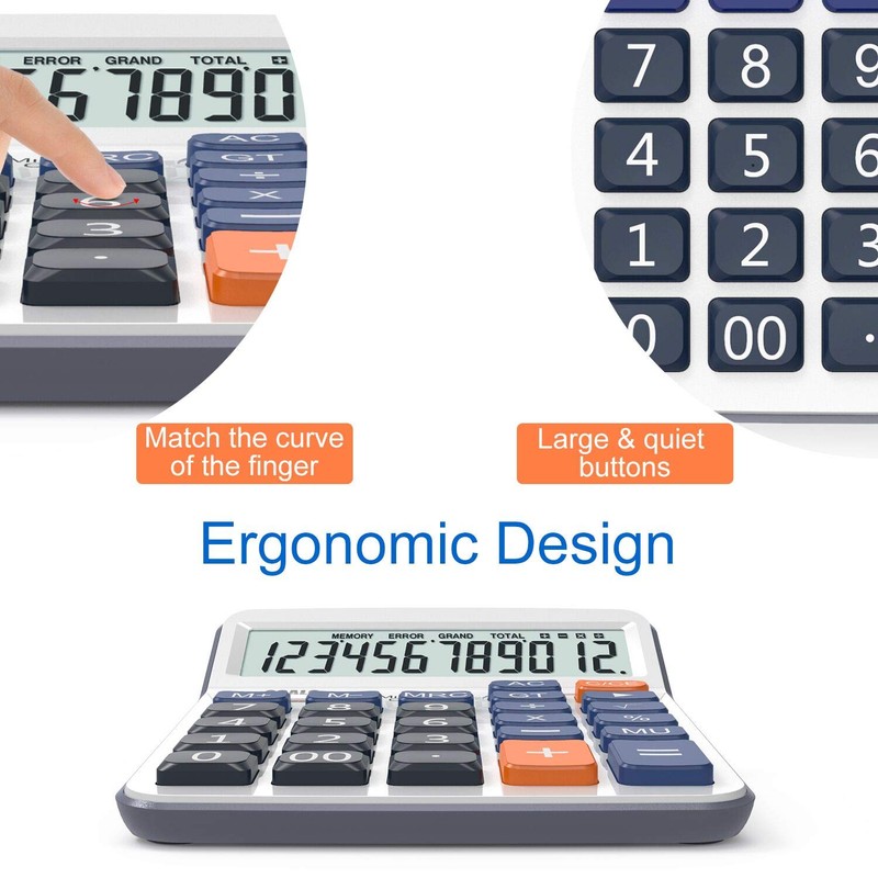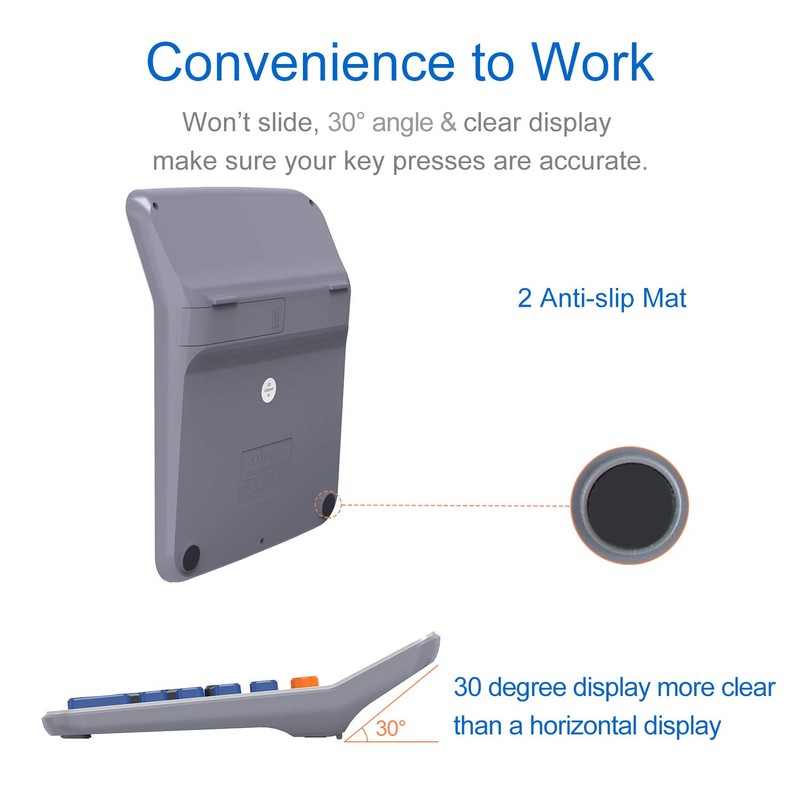 - 【30°角度付きデスクトップ電卓】 このデスク電卓の画面は視界と反対で、すべての計算が読みやすくなっています。 3 色分けされた大きなボタンは、ABS プラスチック製で、指のカーブにマッチし、押すたびにより正確になり、より効率的に作業します。