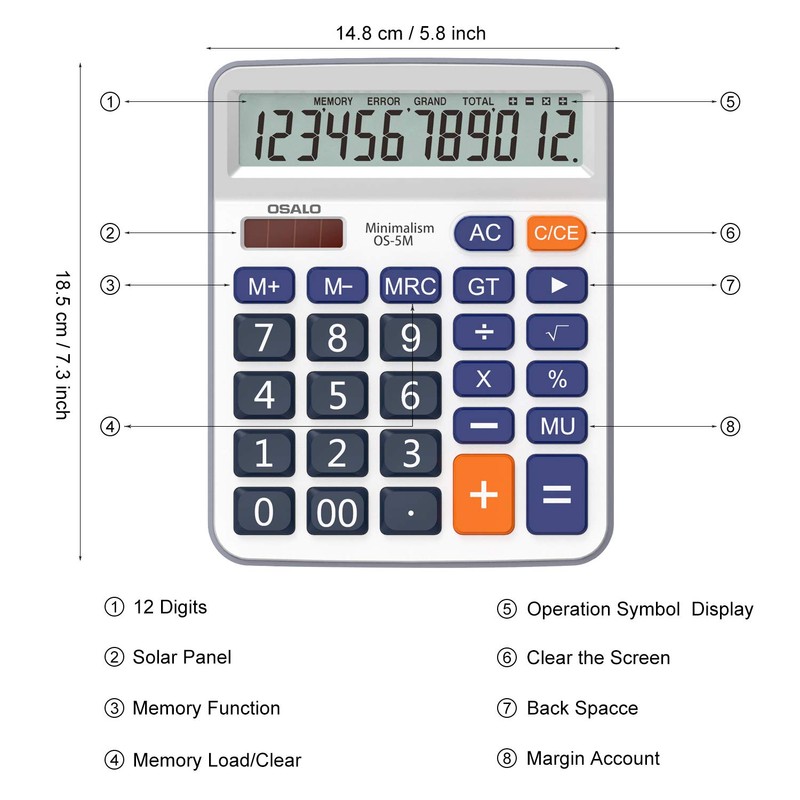 - 【ABSエンジニアリングプラスチック】この12桁の計算機は、ABS高強度エンジニアリングプラスチックで作られており、軽量ながら耐久性に優れています。 机の上の高さに何回も落下しても耐えられます。