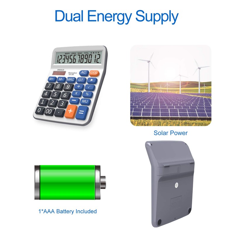 - 【デュアルパワーソーラー計算機】ソーラーとバッテリーの両方が電卓にエネルギーを供給します。 バッテリーが切れると、ソーラーパネルは電卓を使用するためのバックアップエネルギーを提供します。恥ずかしさから遠ざけます。 使用を停止すると8分後に自動的にオフになります。バッテリーの寿命を延ばし、消費電力を削減します。