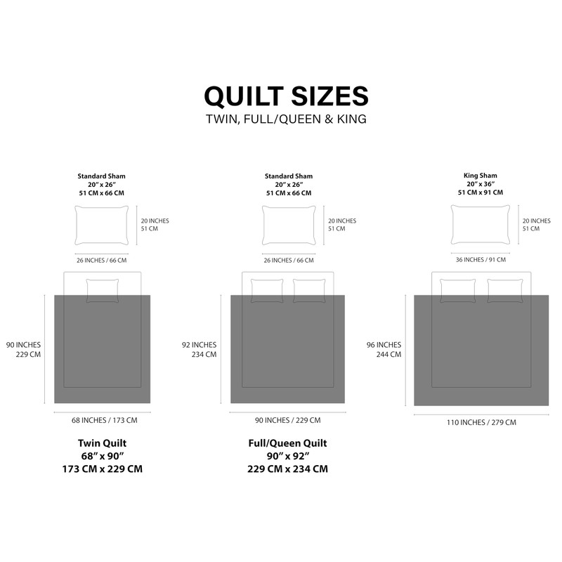 - Package included: Wrap yourself up in soft comfort, and rest easy. The Twin Quilt Set measures 68-inch x 90-inch and includes one Standard Pillow sham measuring 20-inch x 26-inch.