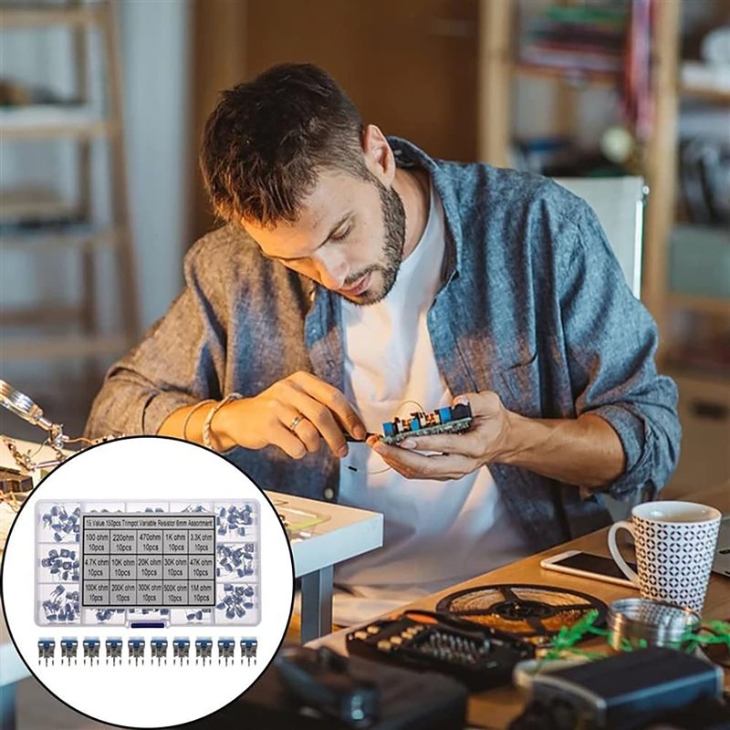 PENGLIN 150pcs Variable Resistors 100-1M ohm 15 Types 6mm Potentiometer Semi-Fixed Resistor Semi-Fixed Volume Set Adjustable 100Ω to 1MΩ(150)