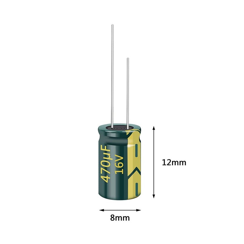 - Electrolytic Capacitor Dimensions: 8x12mm