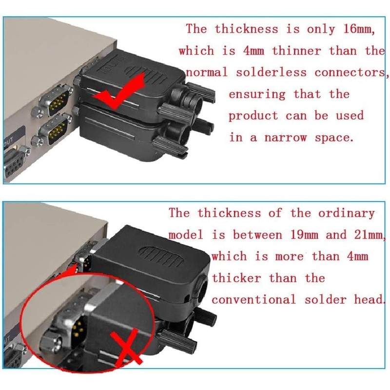 - THINNER: The thickness is only 16mm, which is 4mm thinner than the normal solderless connectors, ensuring that the product can be used in a narrow space.