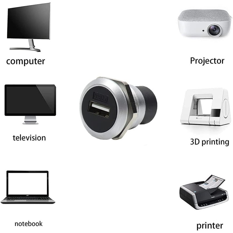 • 【EASY INSTALLATION】Standard USB 2.0 Connector for Panel Mount Installations, USB female to female field installable coupler, no soldering, no installation tools. Adapt to a variety of harsh environments, acid, alkali, oxidation and so on. Guarantee the stability of the current.