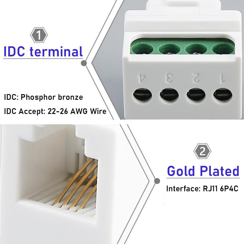 PENGLIN Pack of 5 RJ11 Extension Panel Mounting Adapter, CAT3 Keystone Telephone Module, RJ11 6P4C Female to 4-Pin Screw Connection