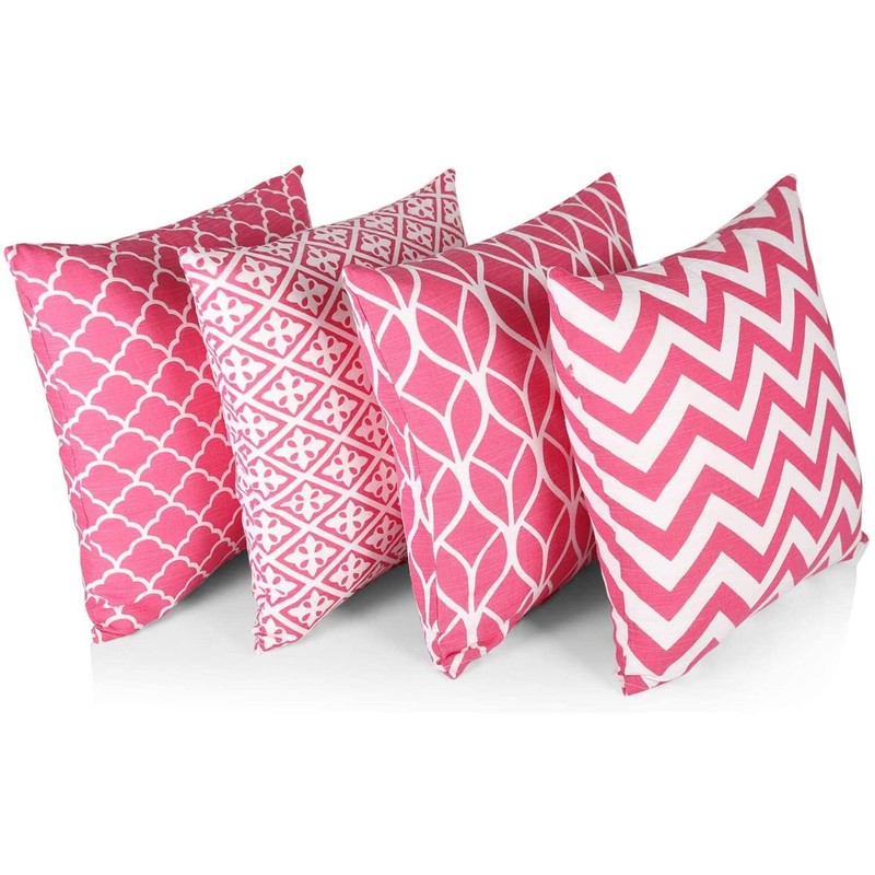 Penguin Home Coordinated Decorative Square Cushion Covers, Pack of 4, pink, 45 x 45 cm