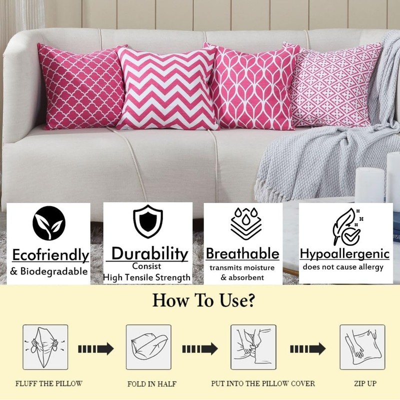 - SUPERIOR QUALITY - Our pillow covers are made of 100% cotton linen, soft, durable, ecological, very comfortable and cozy. The pattern is double sided with an invisible zipper for added convenience.