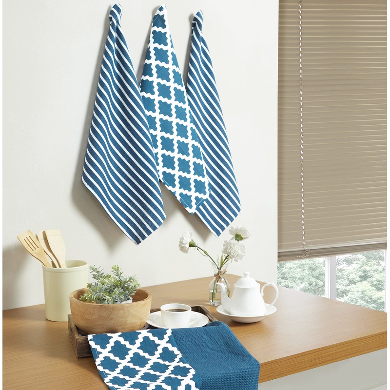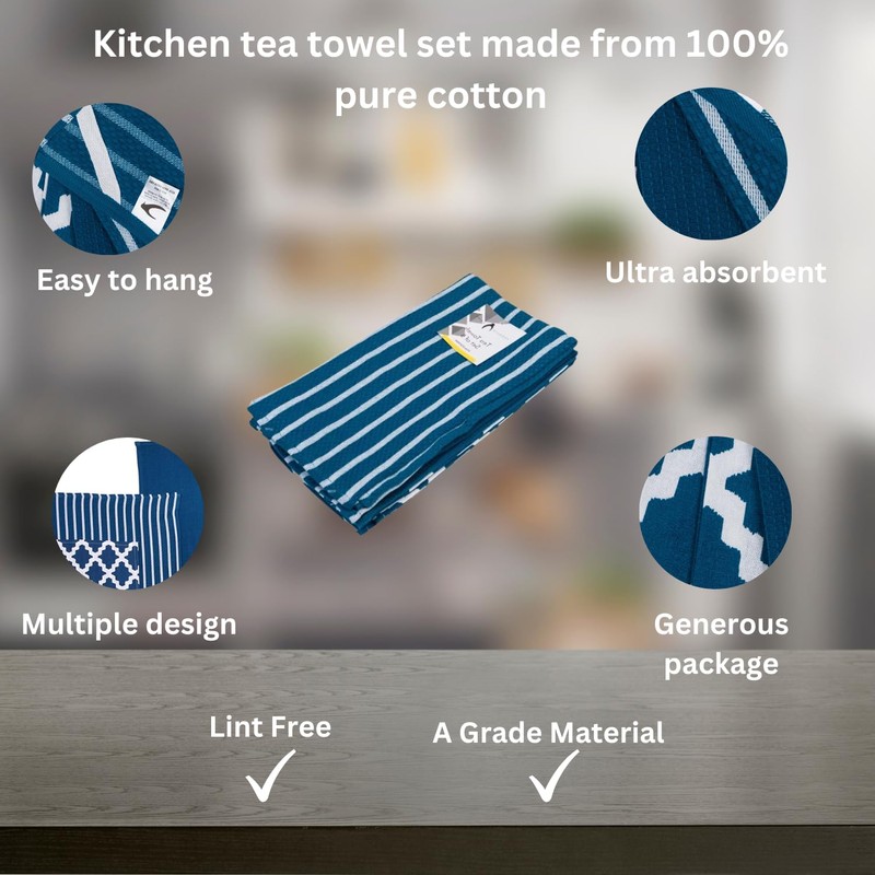 - πππ¦π§ ππ‘ π€π¨ππππ§π¬ - Our set of 5 Blue Coloured Pure Cotton Tea Towels for the Kitchen are your sustainable alternative to paper tissues. Made of 100% pure cotton fabric makes these towels extremely soft and comfortable for everyday use.