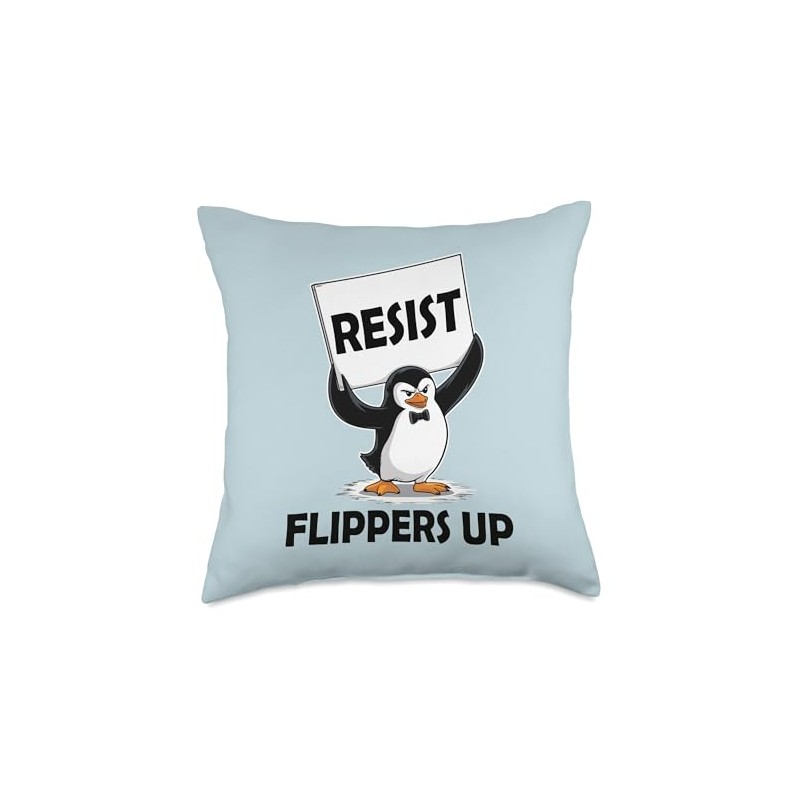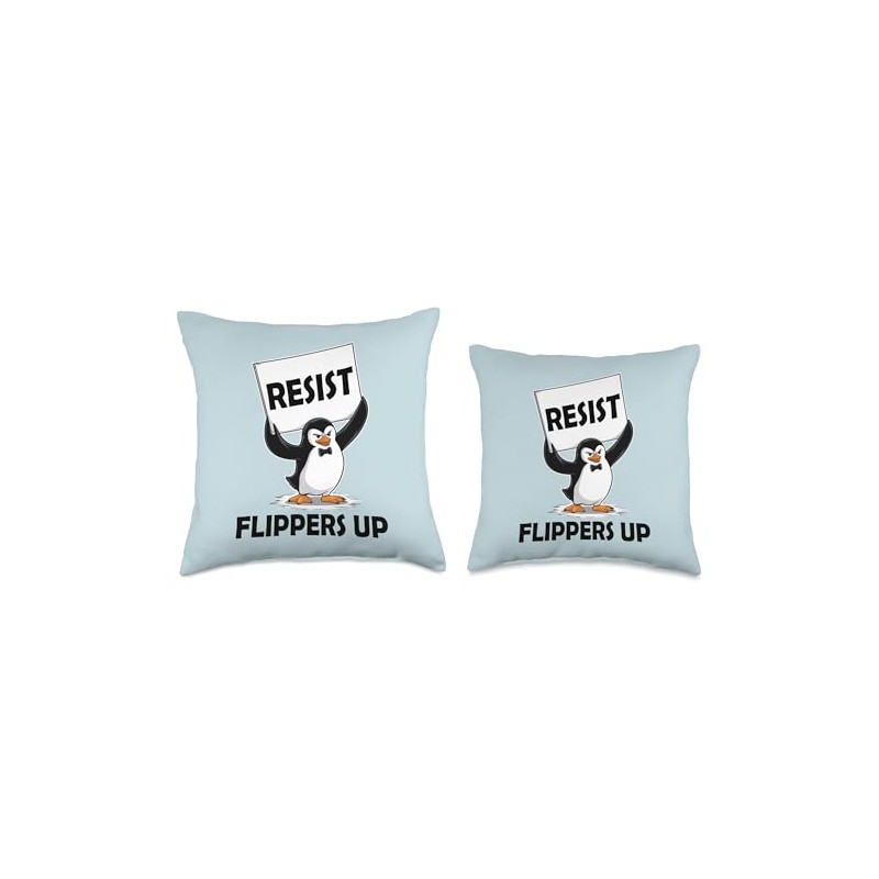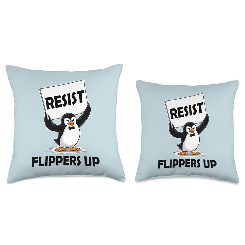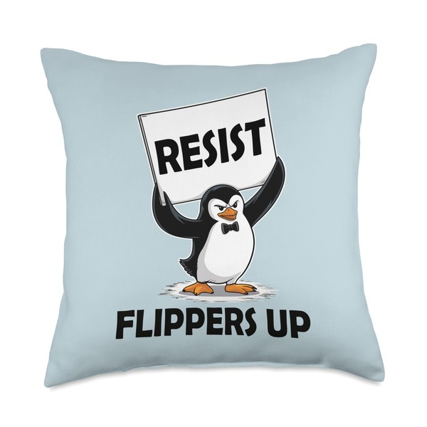 Penguin Tariff Flippers Up I Stand with the Penguins Resist Throw Pillow