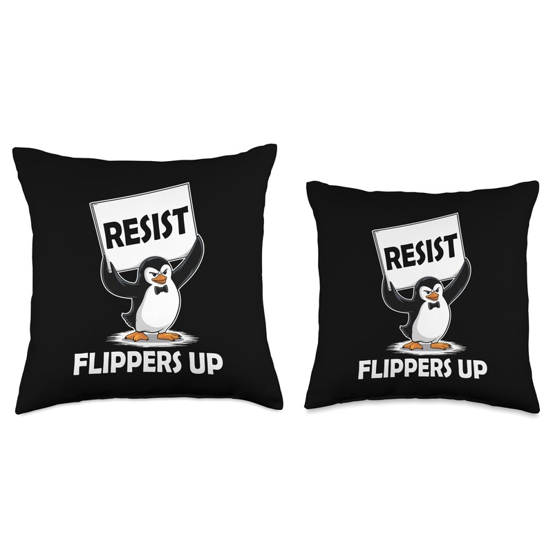 Penguin Tariff Flippers Up I Stand with the Penguins Resist Throw Pillow