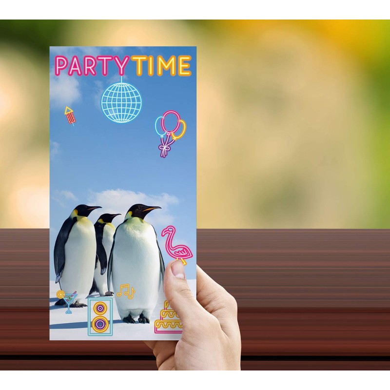 Fun and elegant birthday invitations with celebrating penguins - ideal for birthdays,